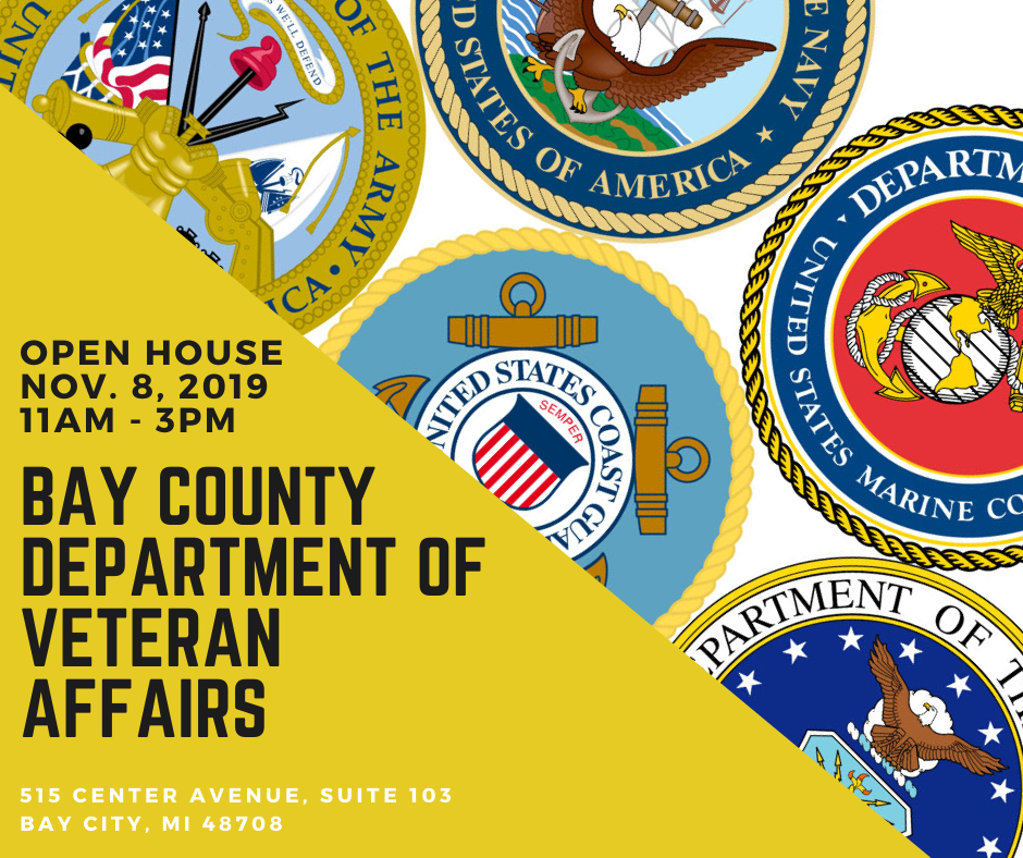 The Bay County Department of Veteran Affairs will be hosting an open house on Friday, November 8, 2019! This is a great opportunity to check out to their newly remodeled office and to see what services they have to offer for local veterans.
