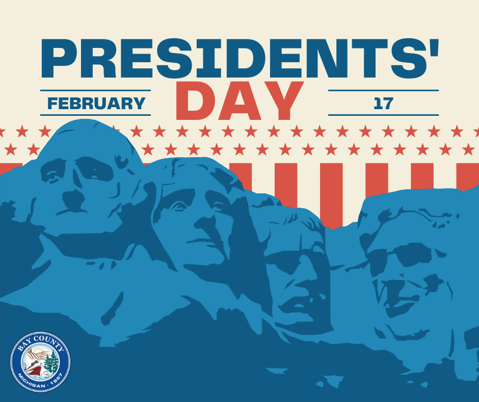 Please note that Bay County offices will be closed on Monday, February 17, 2025, in observance of Presidents' Day. We will reopen for regular business on Tuesday, February 18, 2025, at 8:00 AM.