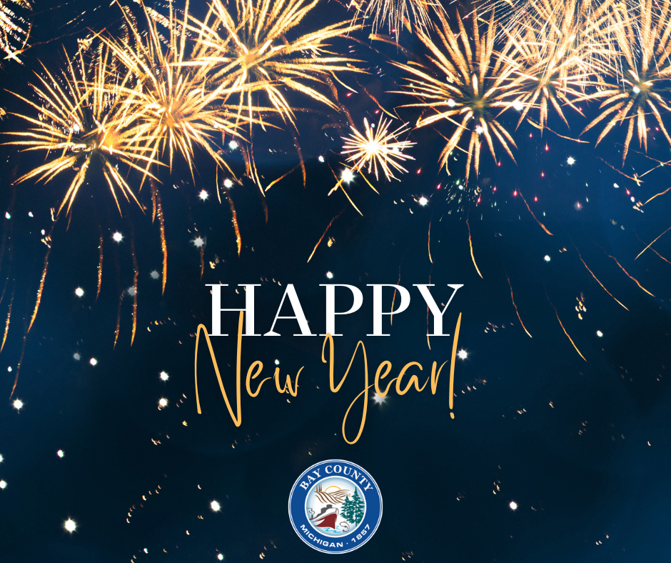 Please note that Bay County offices, excluding emergency services such as the Bay County Sheriff's Office and 911/Central Dispatch, will be closed January 1-2, 2024 in observance of the New Year's holiday. Happy New Year!