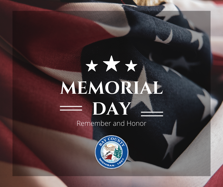 Please note that Bay County offices will be closed on Monday, May 26, 2025, in observance of Memorial Day. We will reopen for regular business on Tuesday, May 27, 2025, at 8:00 AM.