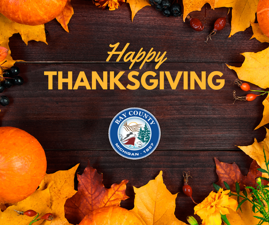 Please note that Bay County offices will be closed on November 27-28, 2025, in observance of the Thanksgiving holiday. We will reopen for regular business on Monday, December 1, 2025, at 8:00 AM.